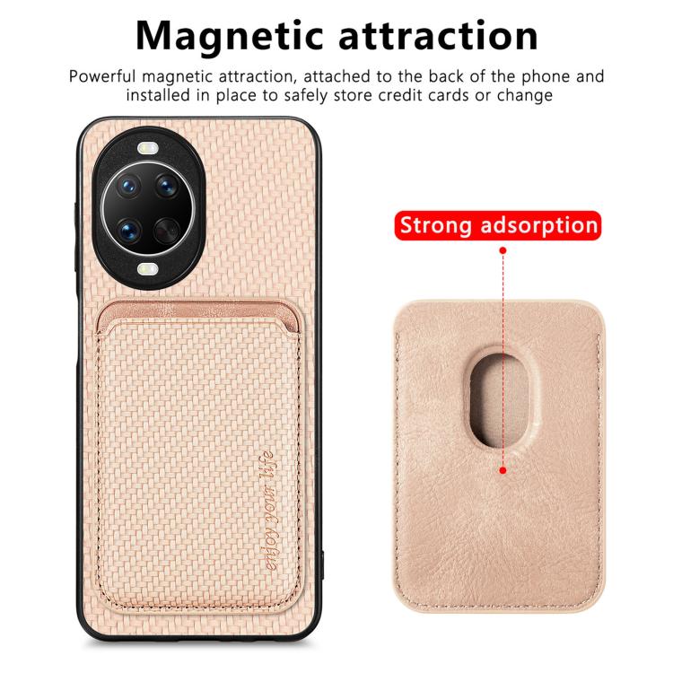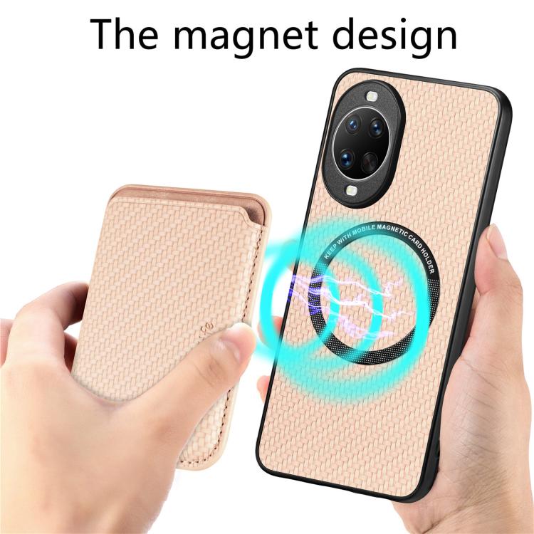 Funda de cuero de fibra de carbono con tarjetero Magsafe para Huawei Nova 14 Pro (caqui)