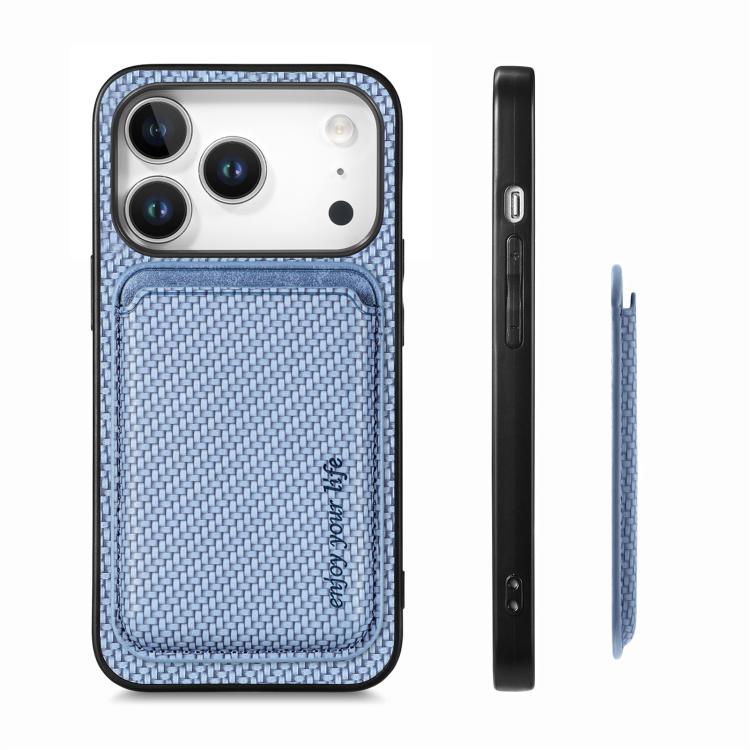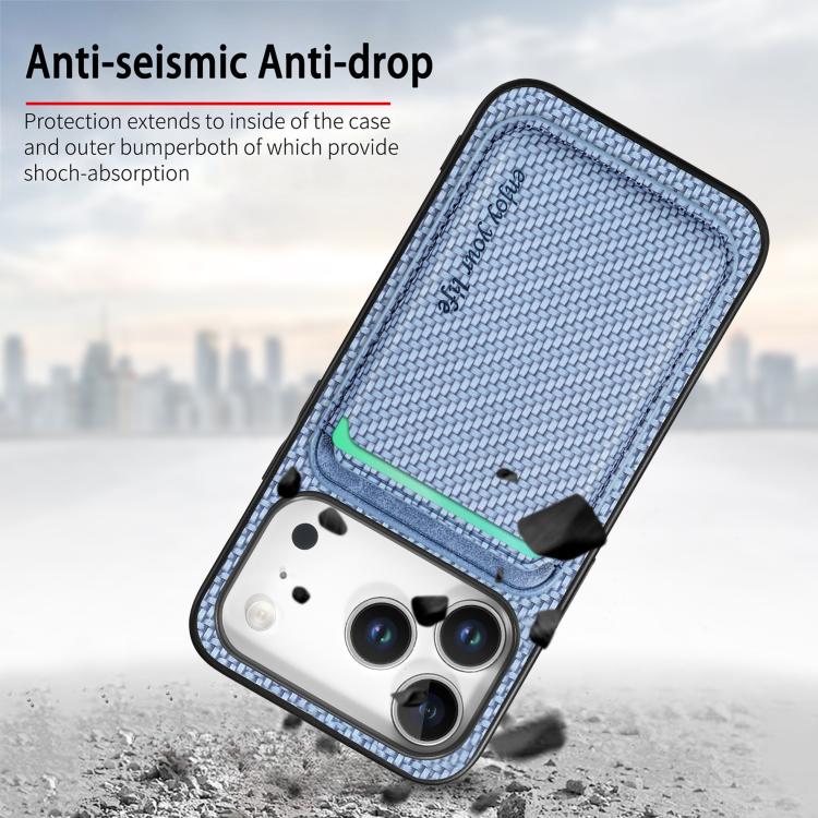Funda de cuero de fibra de carbono con tarjetero Magsafe para iPhone 17 Pro (azul)