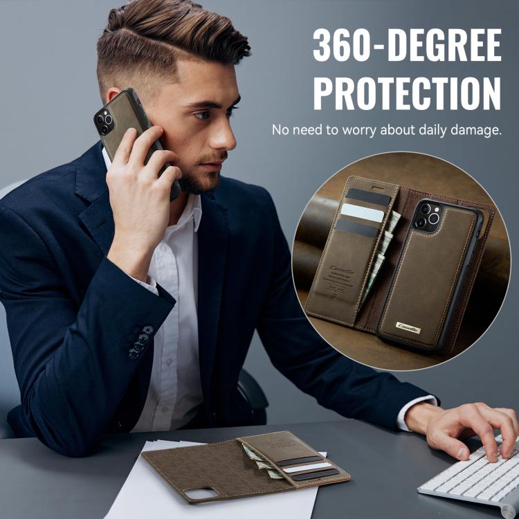 Funda de cuero desmontable CaseMe C49 con bloqueo RFID MagSafe para iPhone 11 Pro Max (café)