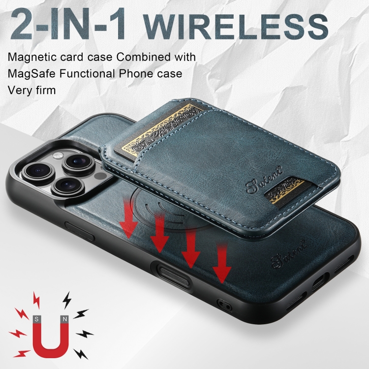 Funda de Cuero Desmontable Suteni H15 Magsafe Oil Eax Tipo Billetera para iPhone 16 (Azul)