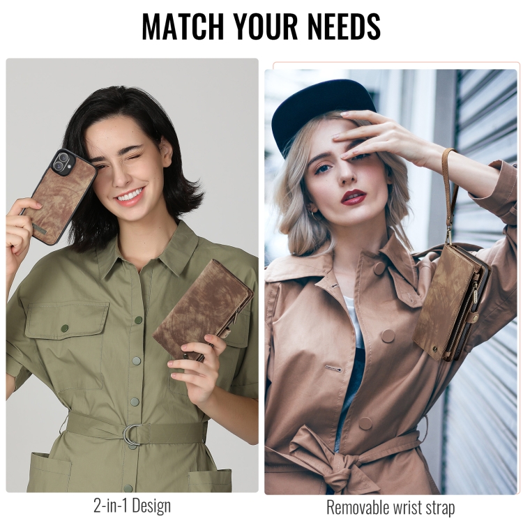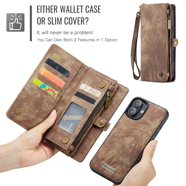 Funda de Cuero Caseme 008 Desmontable Multifuncional para iPhone 16 Plus (Marrón)