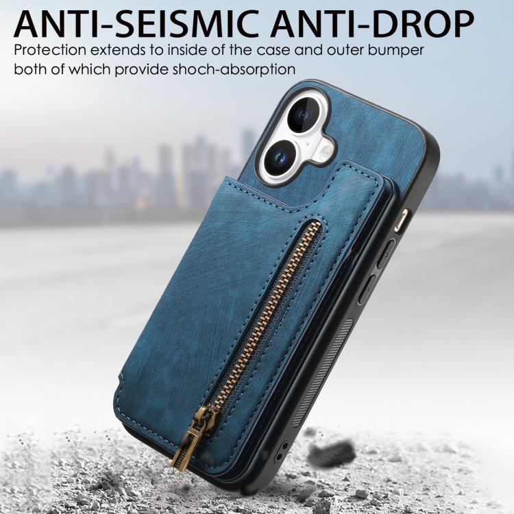 Funda de Cuero Estilo Retro con Cremallera para iPhone 16 (Azul)