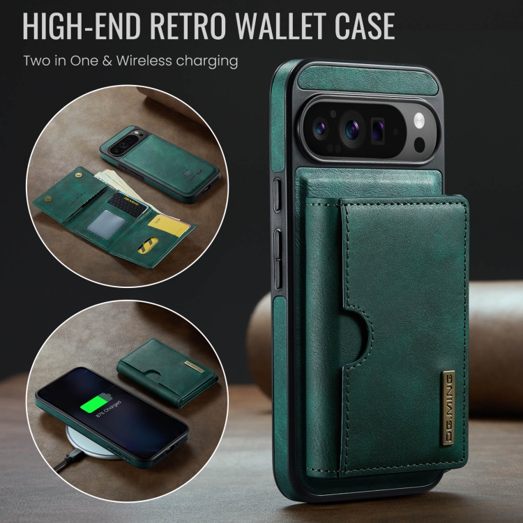 Funda de Cuero Extraíble con Tarjetero RFID Tres Pliegues Dg.Ming M6 para Google Pixel 9 Pro XL (Verde)
