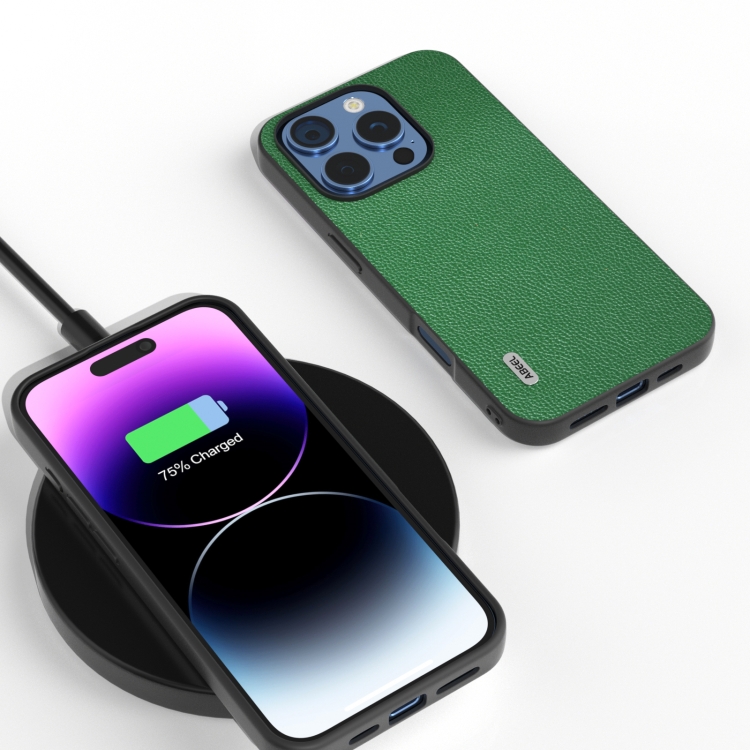 Funda de Cuero Genuino Abeel con Borde Negro para iPhone 16 Pro Max (Verde)