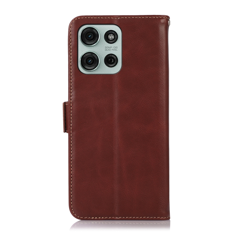 Funda Cuero Genuino Crazy Horse Magnética para Motorola Moto G75 5G (Marrón)