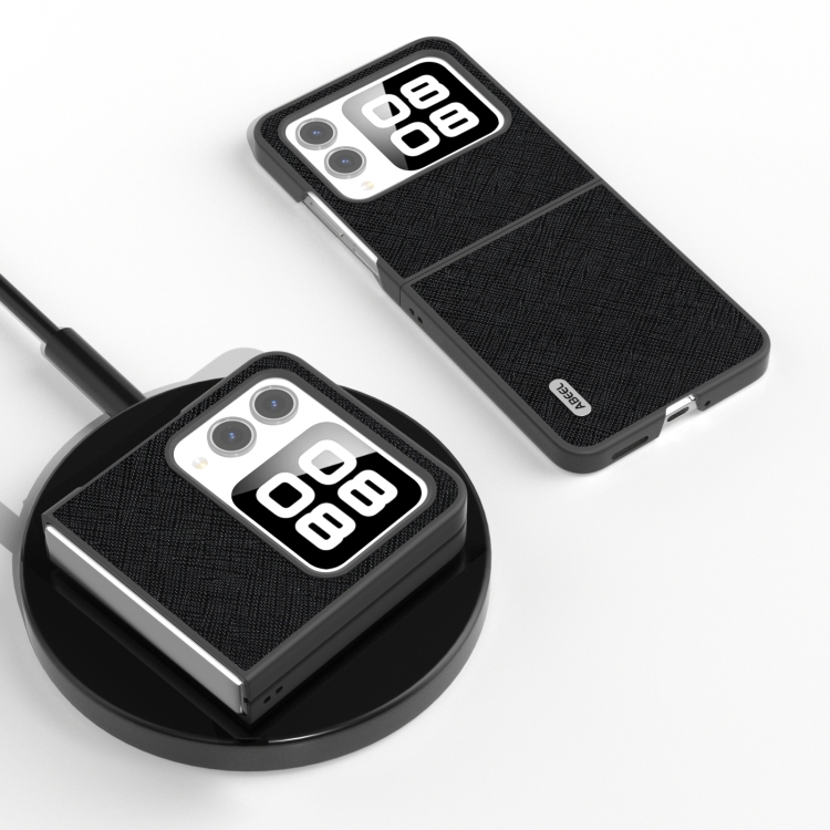Funda de Cuero Genuino Abeel para Huawei Nova Flip con Textura Cruzada (Negro)