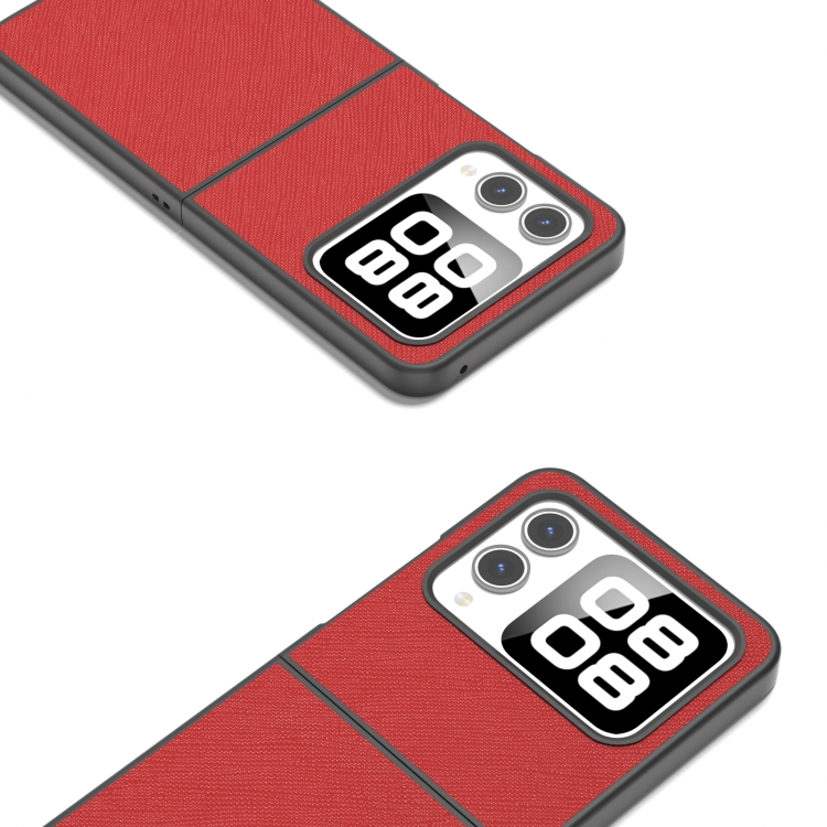• 1x Funda de Cuero Genuino Abeel para Huawei Nova Flip con Textura Cruzada (Rojo)