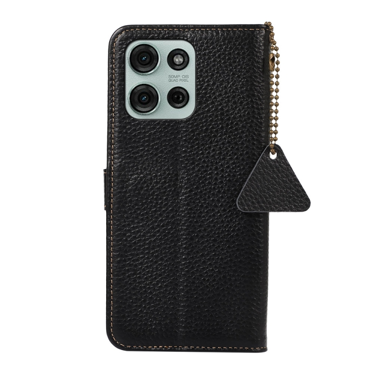 Funda de Cuero Genuino con Textura de Lichi Rfid para Motorola Moto G75 5G (Negro)