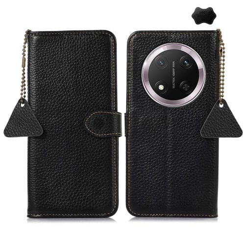 Funda de Cuero Genuino con Textura de Lichi Rfid para Honor X9C (Negro)
