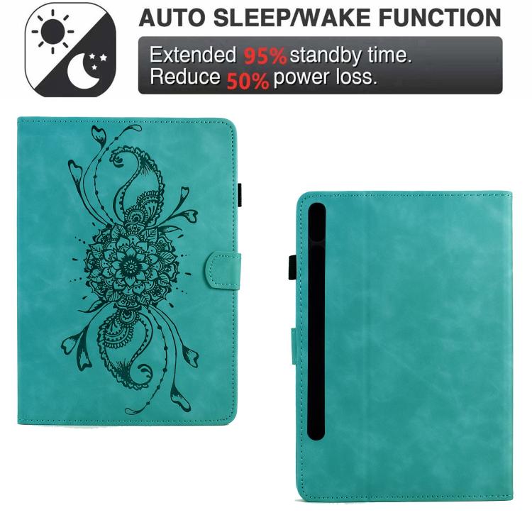Funda de cuero inteligente con relieve de mandala para Samsung Galaxy Tab S10 FE+ (azul claro)