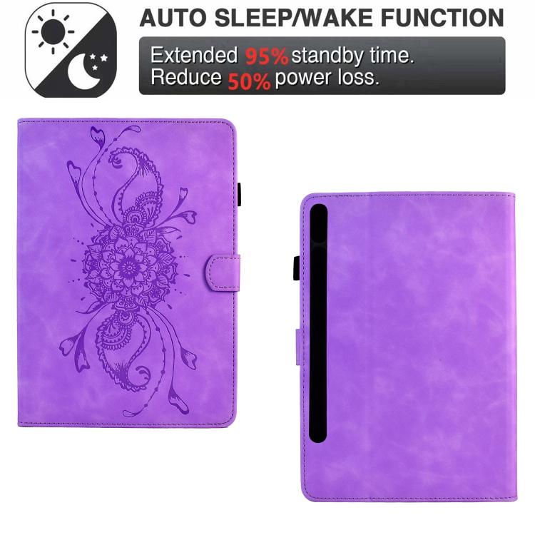Funda de cuero inteligente con relieve de mandala para Samsung Galaxy Tab S10 FE+ (morado claro)