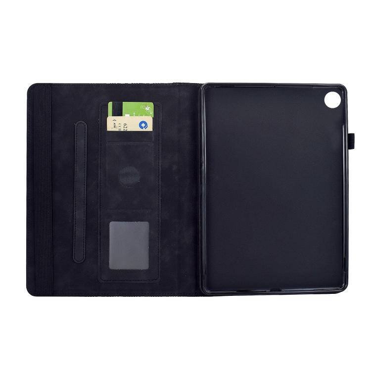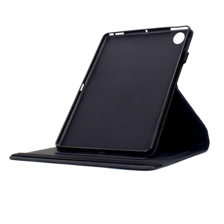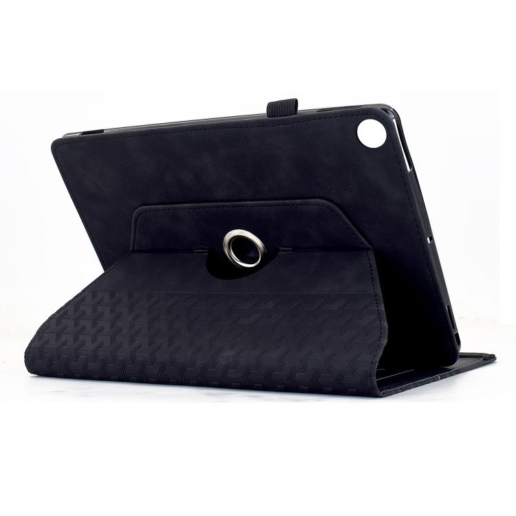 Funda de cuero inteligente con relieve y bloques de construcción giratorios para Samsung Galaxy Tab A9+ (negra)