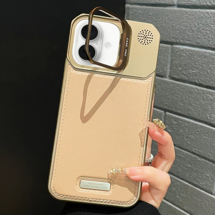 Funda de Cuero para iPhone 16 con Soporte de Metal y Función Magsafe (Dorada)