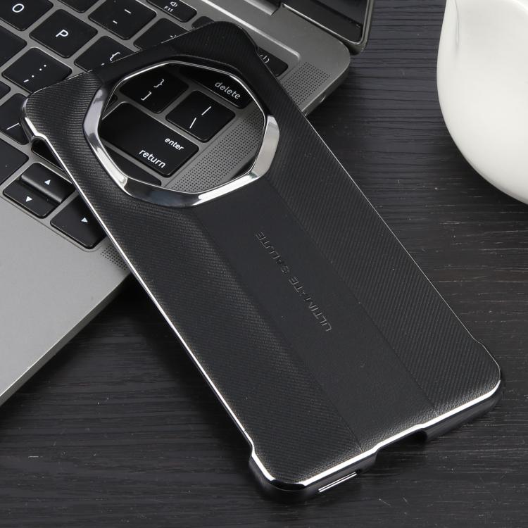 Funda de Cuero Liso Galvanizado para Huawei Mate 70 Rs Ultimate (Negro)