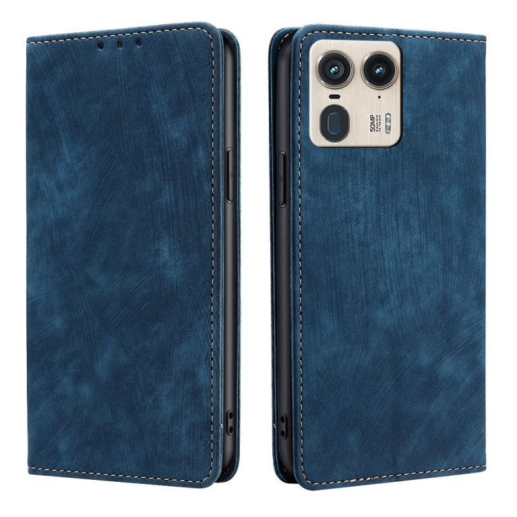Funda de Cuero Magnética con Cepillo Antirrobo RFID para Motorola Edge 50 Ultra (Azul)