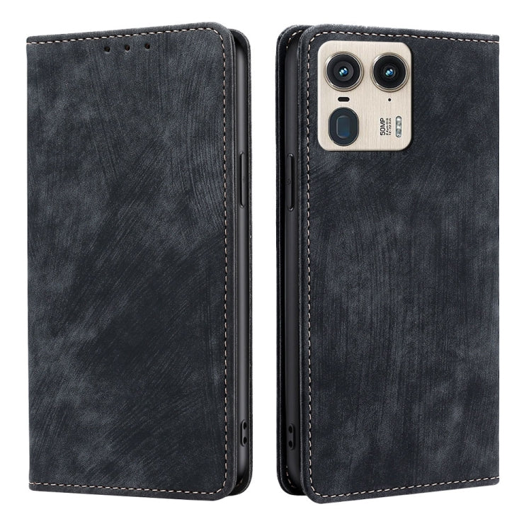 Funda de Cuero Magnética con Cepillo Antirrobo RFID para Motorola Edge 50 Ultra (Negro)