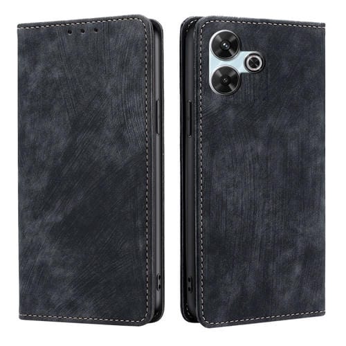 Funda de Cuero Magnética con Cepillo Antirrobo Rfid para Redmi 13 4G (Negra)