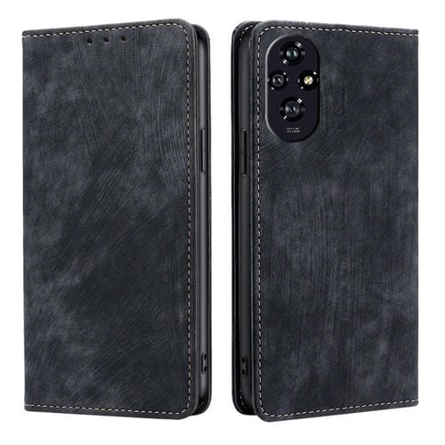 Funda de Cuero Magnética con Cepillo Antirrobo RFID para Honor 200 5G (Negro)