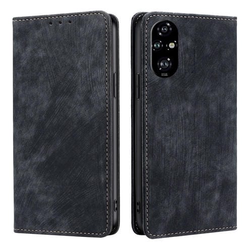 Funda de Cuero Magnética con Cepillo Antirrobo Rfid para Honor 200 Pro 5G (Negro)