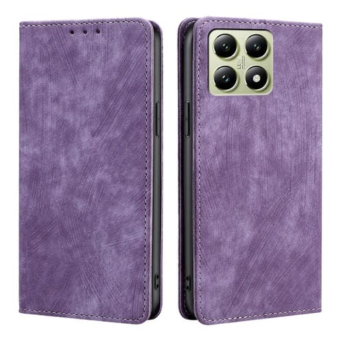 Funda De Cuero Magnética Con Cepillo Antirrobo Rfid Para Teléfono Xiaomi 14T 5G (Morado)