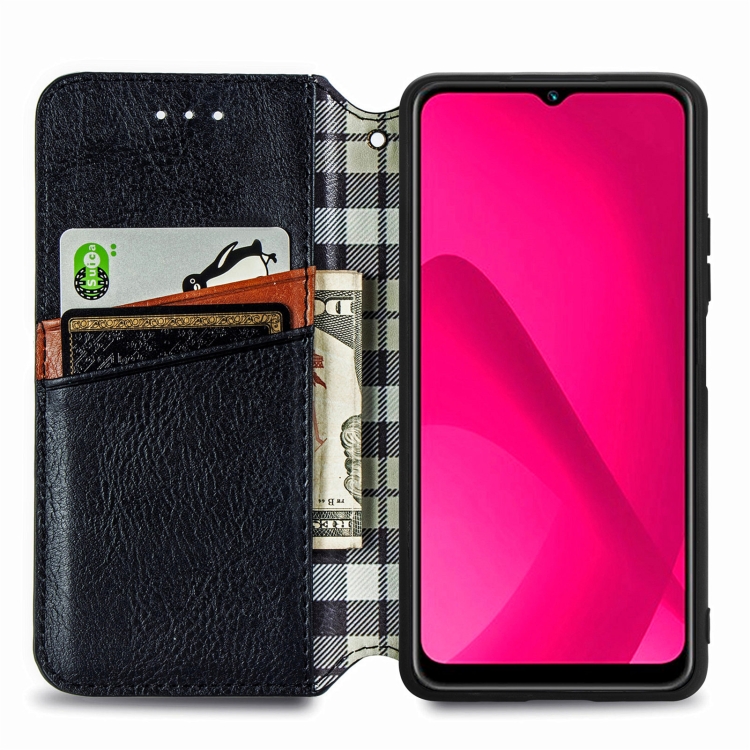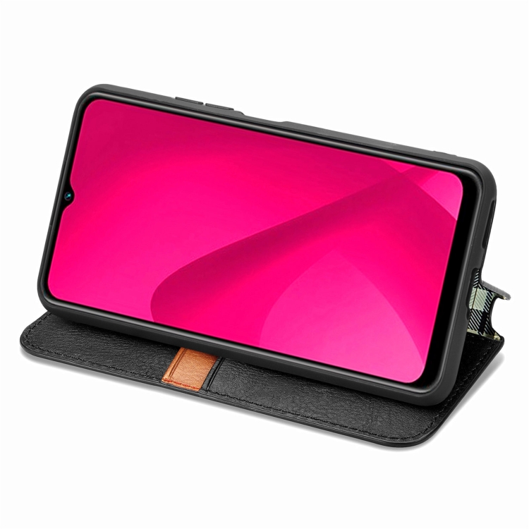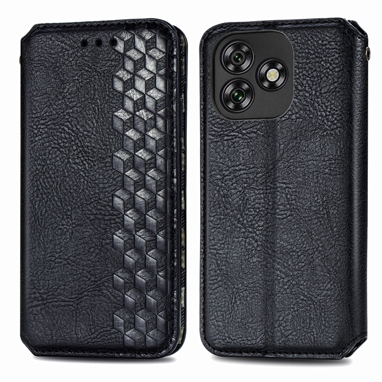Funda de Cuero Magnética con Diseño de Cuadrícula Cúbica para Oukitel C53 (Negra)