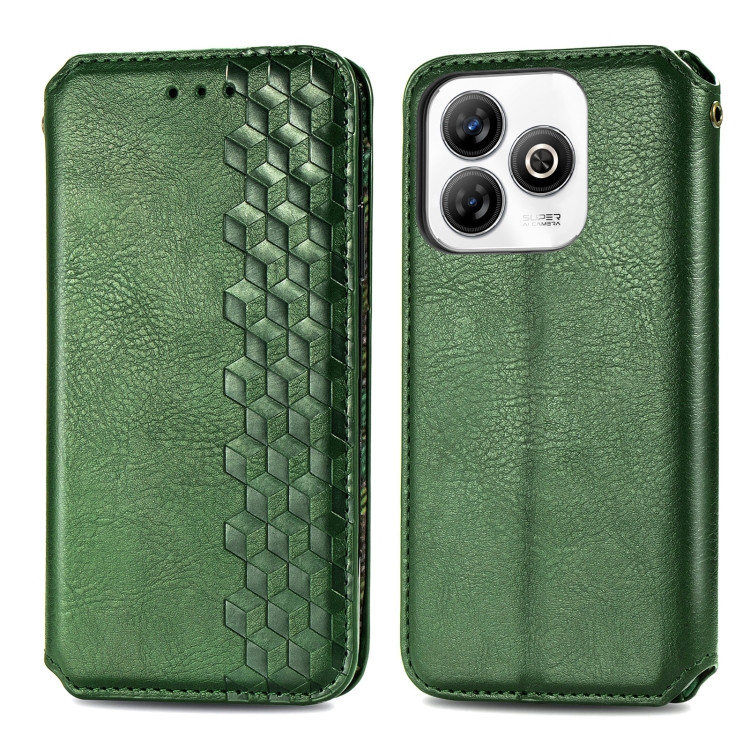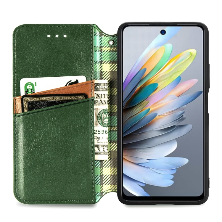 Funda de Cuero Magnética para ZTE Blade A75 4G con Diseño de Cuadrícula Cúbica (Verde)