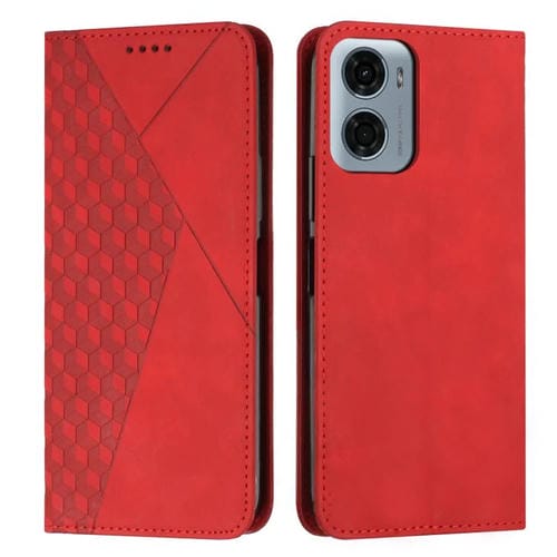 Funda de Cuero Magnética Motorola Moto G05 Diseño Diamante Tacto Piel (Rojo)