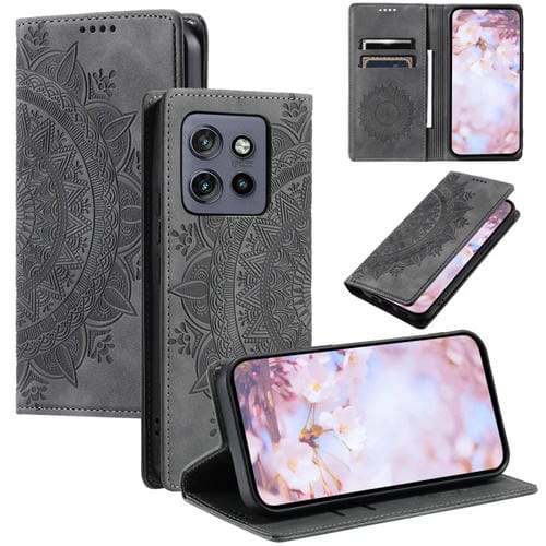 Funda de Cuero Magnética con Relieve Totem para Motorola Edge 50 Neo (Gris)