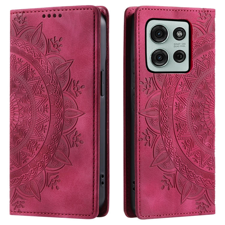 Funda Cuero Magnética con Relieve Totem para Motorola Moto G75 5G (Rojo)