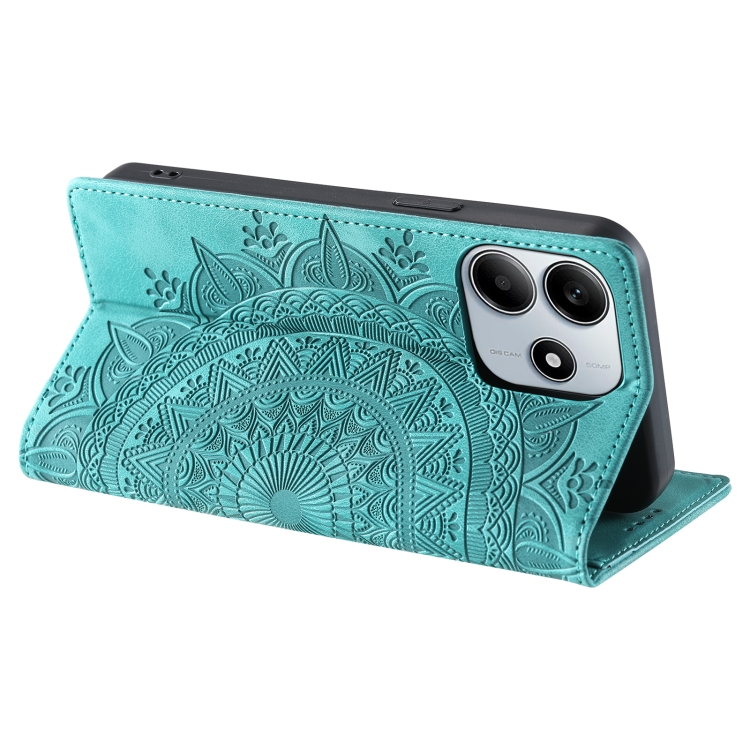 Funda de Cuero Magnética con Relieve Totem para Teléfono Xiaomi Redmi Note 14 5G (Verde)