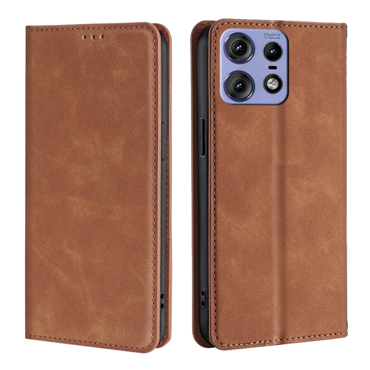 Funda de Cuero Magnética con Tacto de Piel para Motorola Edge 50 Pro 5G (Marrón Claro)