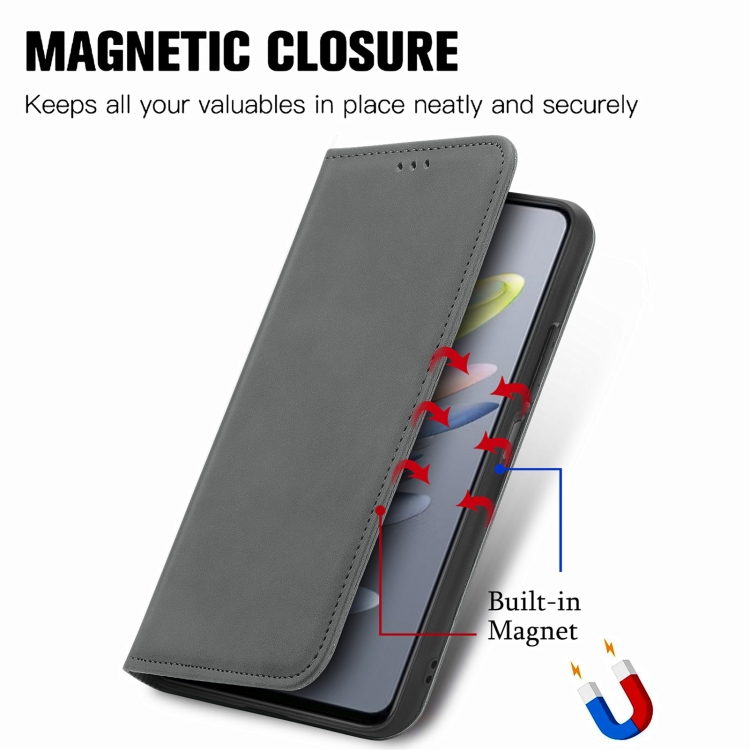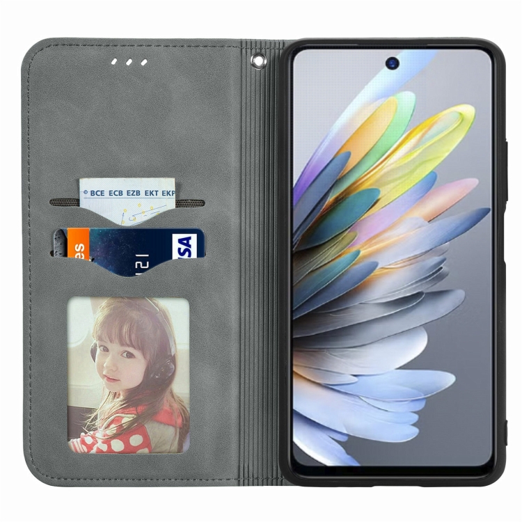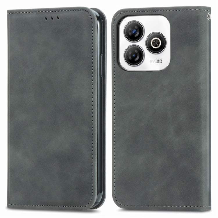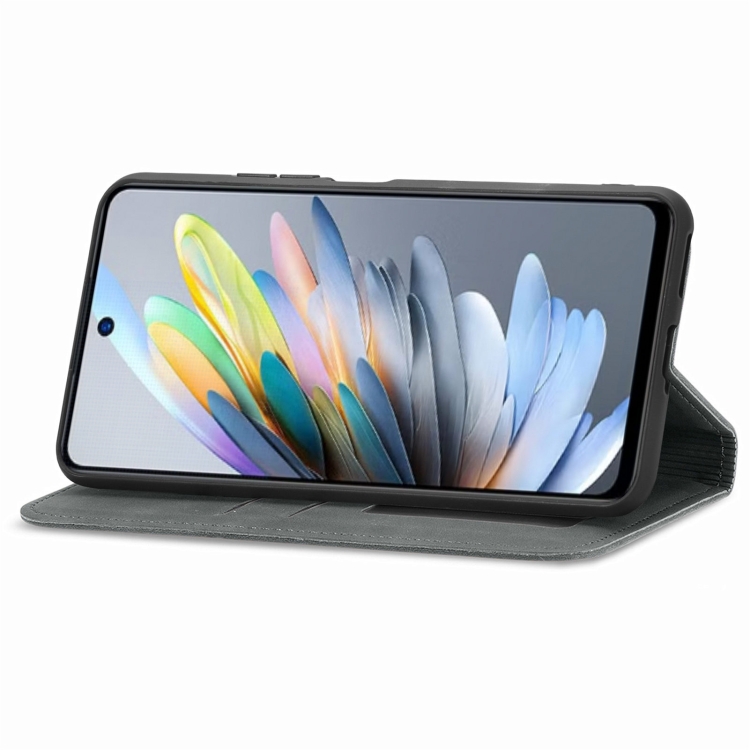 Funda de Cuero Magnética para ZTE Blade A75 4G con Tacto Retro (Gris)