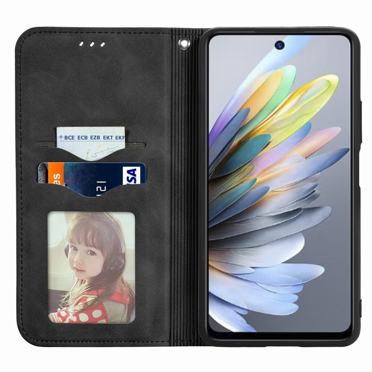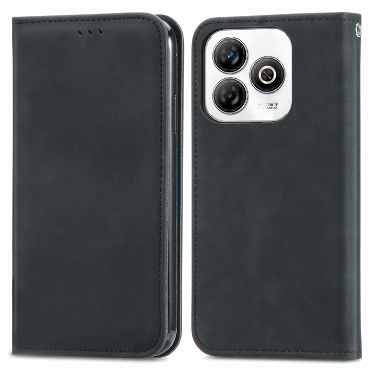 Funda de Cuero Magnética para ZTE Blade A75 4G con Tacto Retro (Negra)