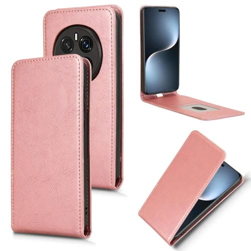 Funda de Cuero Magnética con Tapa Vertical para Honor Magic7 Pro (Oro Rosa)
