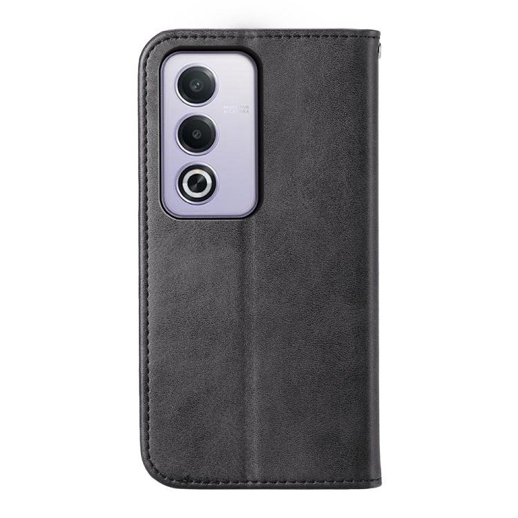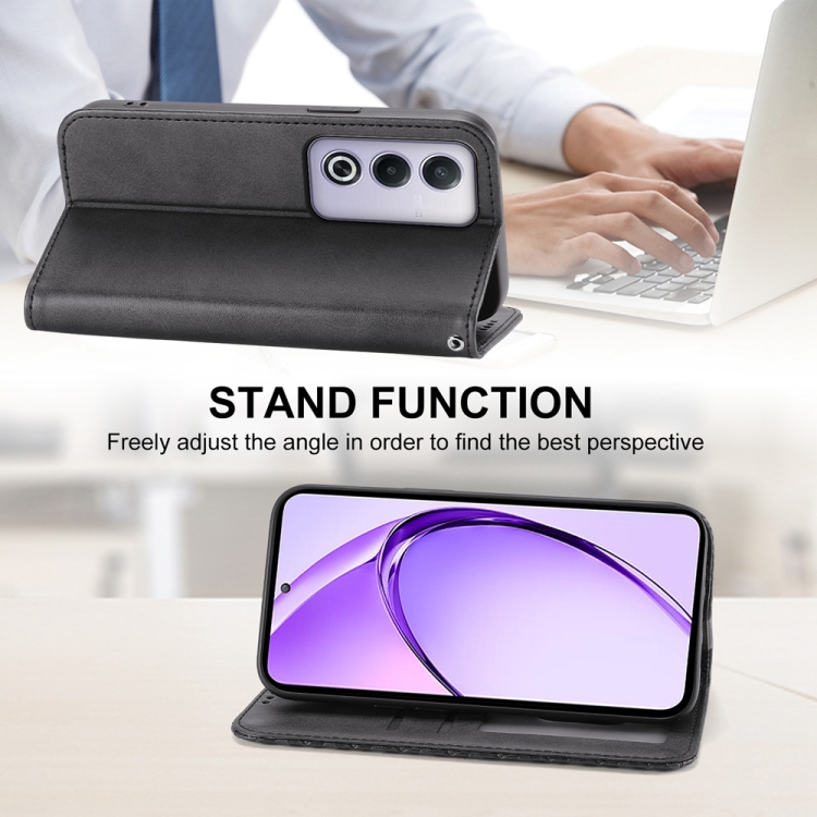 Funda de Cuero Magnética con Textura de Becerro y Cuadrícula Cúbica para Oppo A3 Pro 5G (Negro)