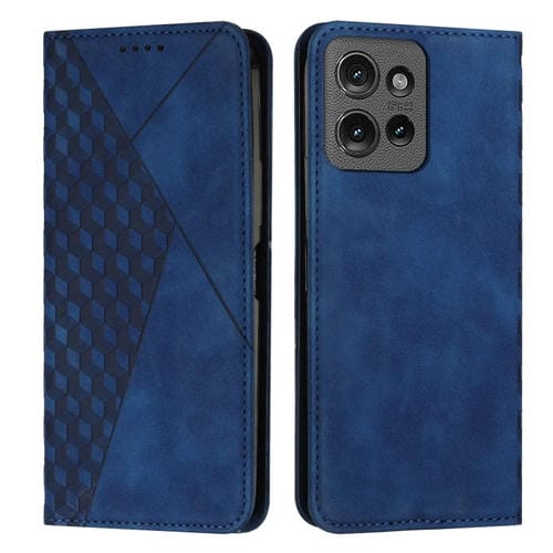 Funda de Cuero Magnética con Textura de Diamante para Motorola Edge 50 (Azul)