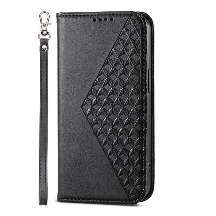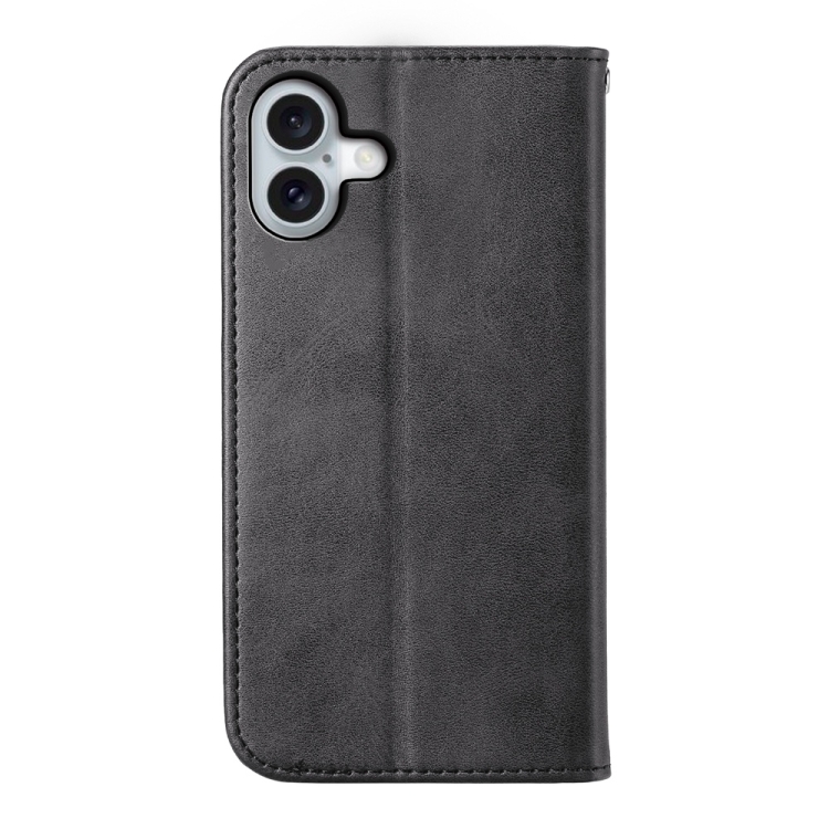 Funda de Cuero Magnética iPhone 16 Plus Textura Piel de Becerro Cuadrícula Cúbica (Negro)