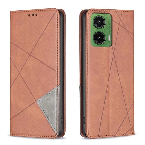 Funda de Cuero Magnética con Textura de Rombos para Motorola Moto G35 (Marrón)