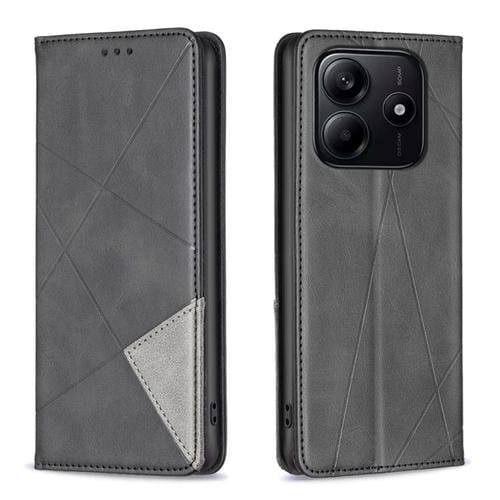 Funda de Cuero Magnética con Textura de Rombos para Redmi Note 14 4G (Negra)