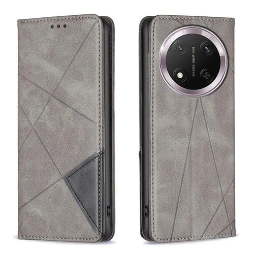 Funda de Cuero Magnética con Textura de Rombos para Honor X9C 5G (Gris)