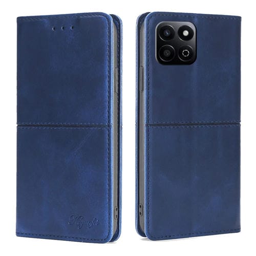 Funda de Cuero Magnética Textura de Vaca para Honor Play 60 Plus (Azul)