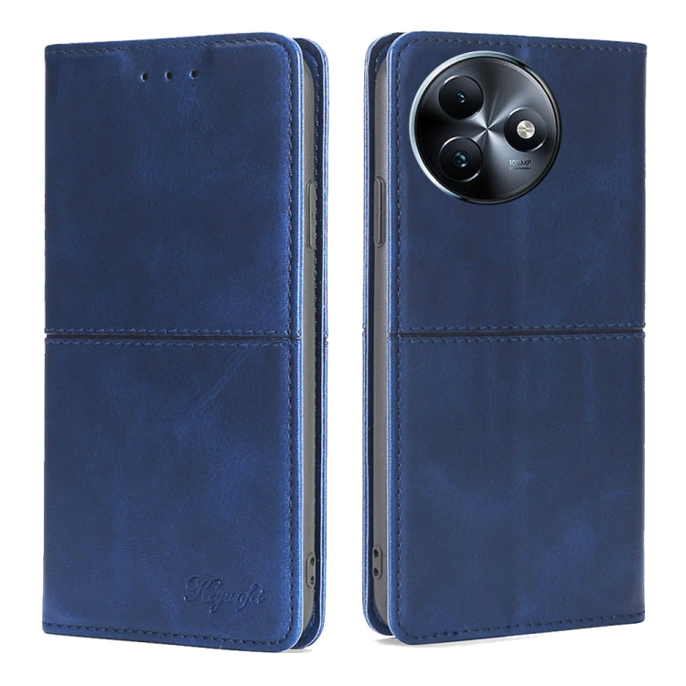 Funda Cuero Magnética Textura de Vaca para Itel S24 4G (Azul)