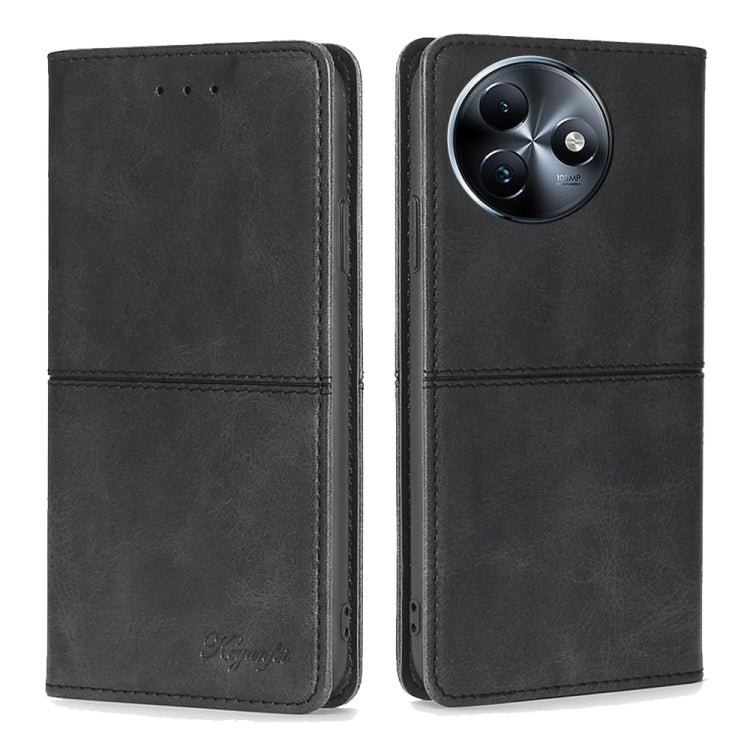 Funda de Cuero Magnética con Textura de Vaca para Itel S24 4G (Negra)