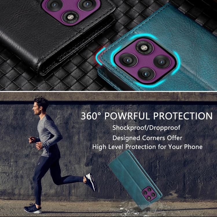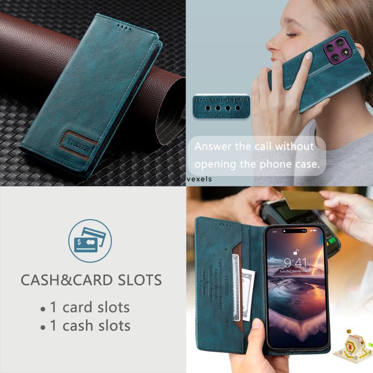 Funda de cuero magnética con textura retro RFID para Motorola Edge 60 Pro (verde)