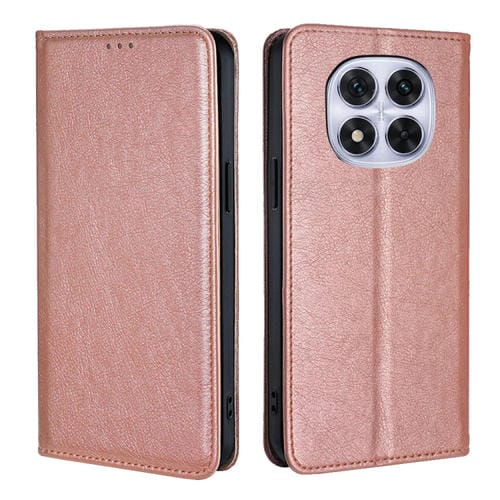 Funda de Cuero Magnético con Acabado Brillante y Aceite Sólido para Redmi Note 14 Pro 5G (Oro Rosa)