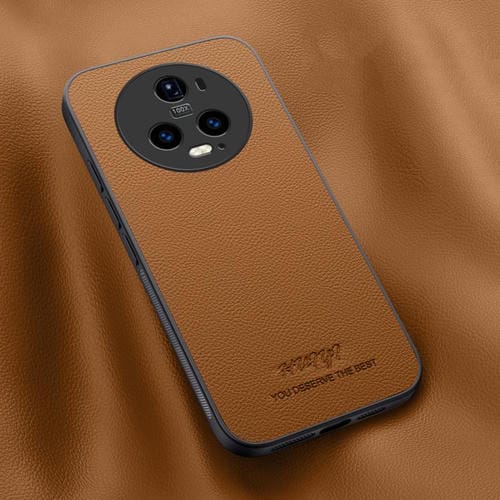 Funda de Cuero Magnética Honor Magic5 Pro Huiyi para Teléfono (Marrón)