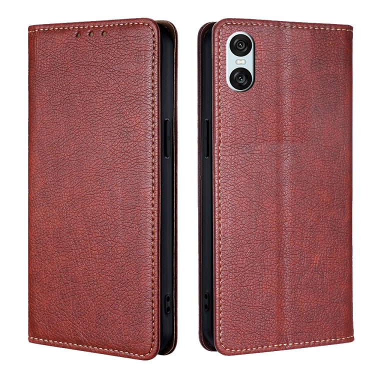 Funda de Cuero Magnética Sony Xperia 10 Vi con Acabado Brillante (Marrón)
