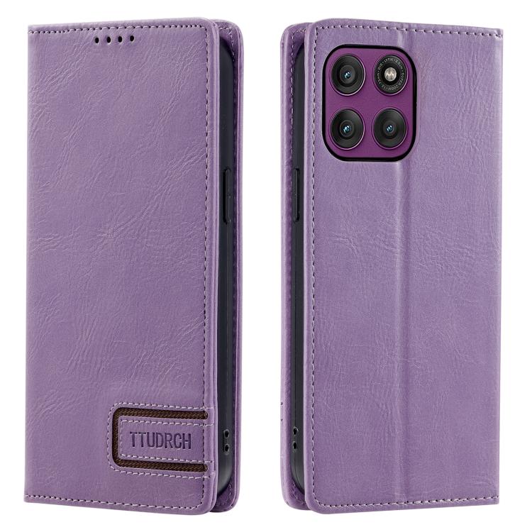 Funda de cuero magnético con textura retro RFID TTUDRCH para Motorola Edge 60 Pro (morado)