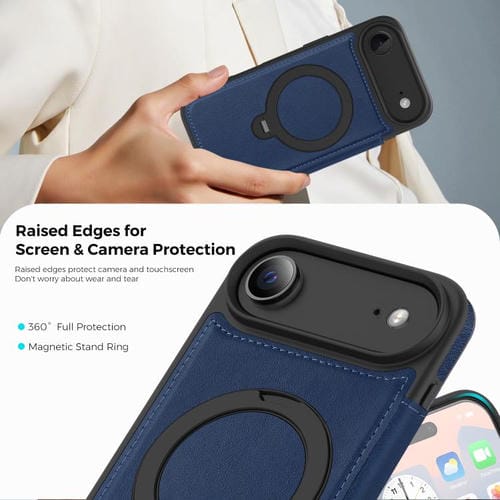 Funda de cuero MagSafe RFID con rotación de 360 grados para iPhone 17 (azul)