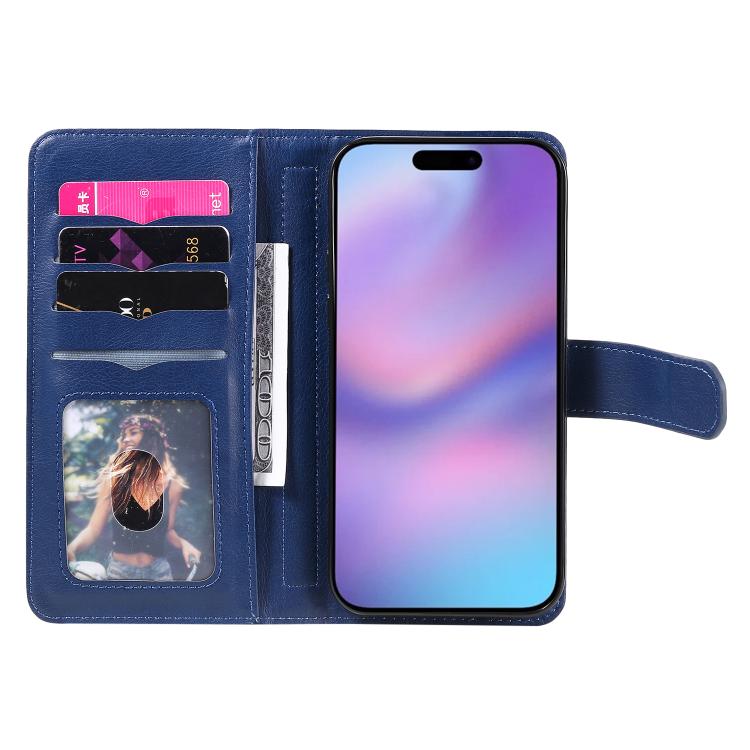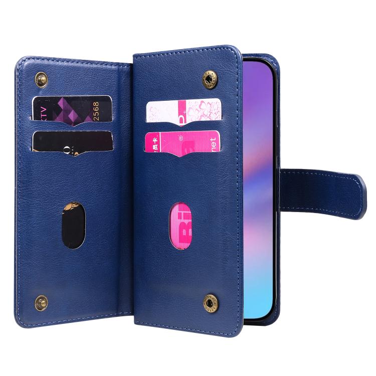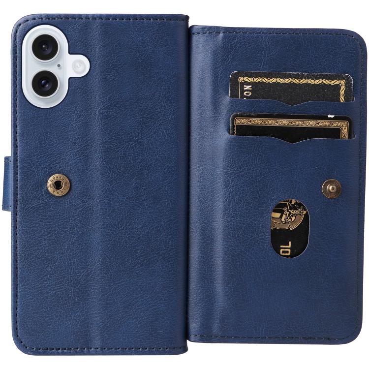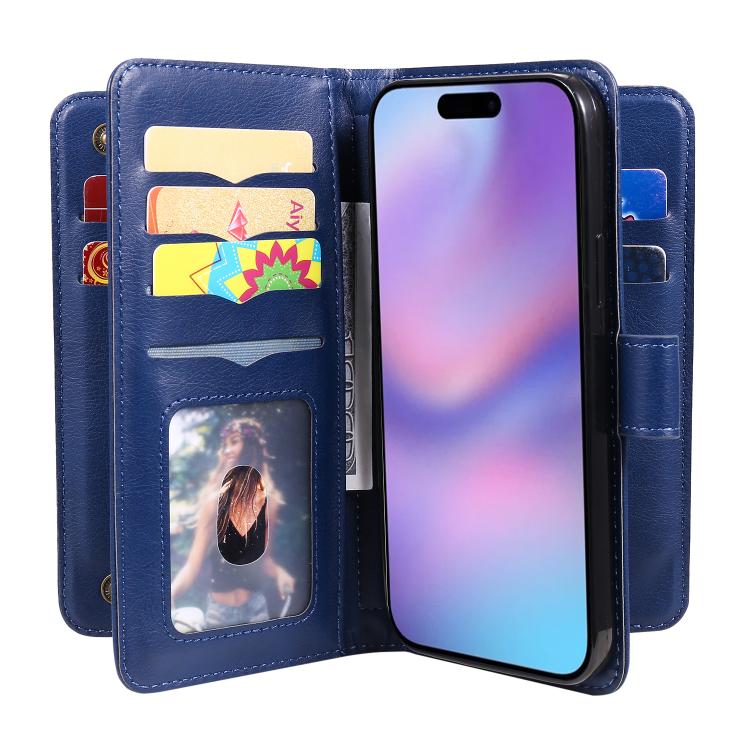 Funda de cuero multifunción tipo billetera para iPhone 17 con 10 ranuras para tarjetas (azul oscuro)